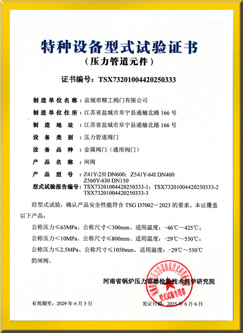 閘閥試驗(yàn)證書