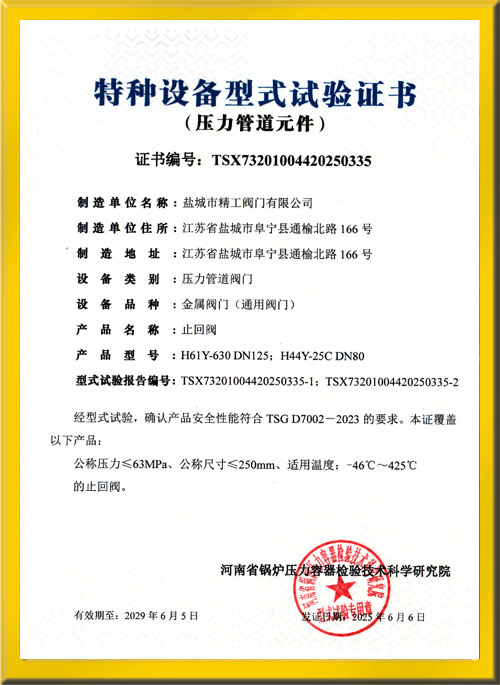 止回閥試驗(yàn)證書