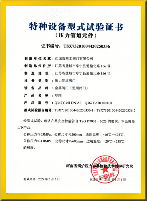 球閥試驗(yàn)證書