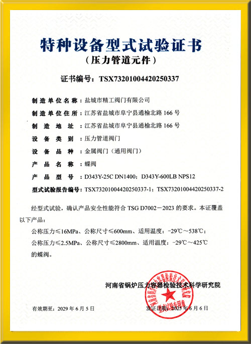 蝶閥試驗(yàn)證書