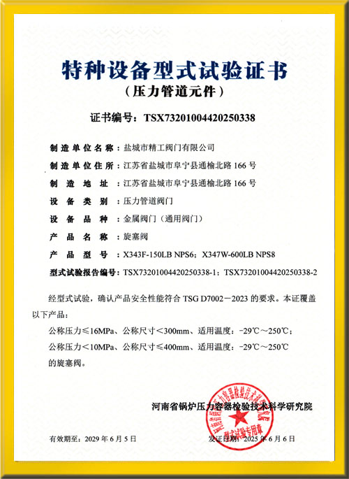 旋塞閥試驗(yàn)證書