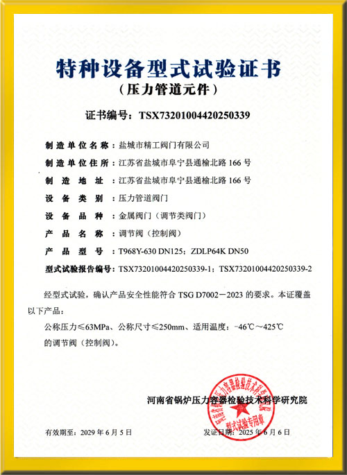 調(diào)節(jié)閥(控制閥)試驗(yàn)證書